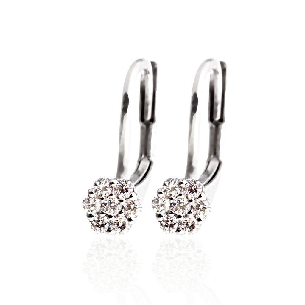 Krásné jemné náušnice z bílého zlata osazené brilianty do tvaru květiny.
