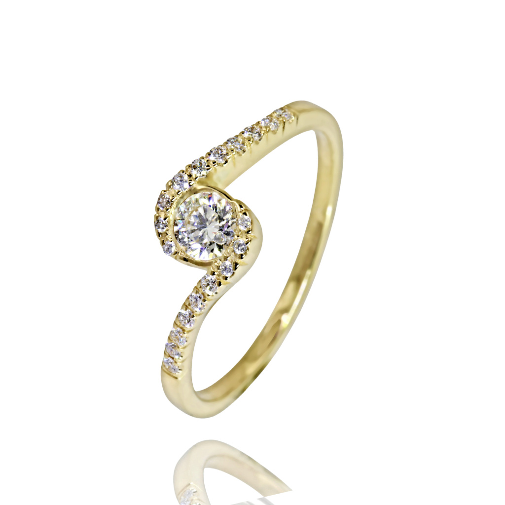 Zásnubní prsten ze žlutého zlata, který zaujme svým vytříbeným designem a nadčasovou elegancí.