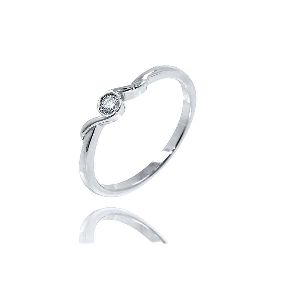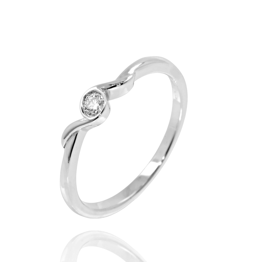 Zásnubní prsten z bílého zlata s přírodním diamantem.Jemný zásnubní prsten vyrobený z bílého zlata, který nese jeden pečlivě zasazený přírodní diamant. Elegantní tvar s lehce zvlněnou linií zvýrazňuje kámen a dodává prstenu moderní a nadčasový vzhled. Ideální volba pro žádost o ruku s citem pro detail a jednoduchou krásu.